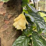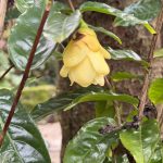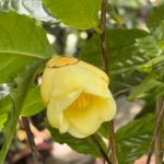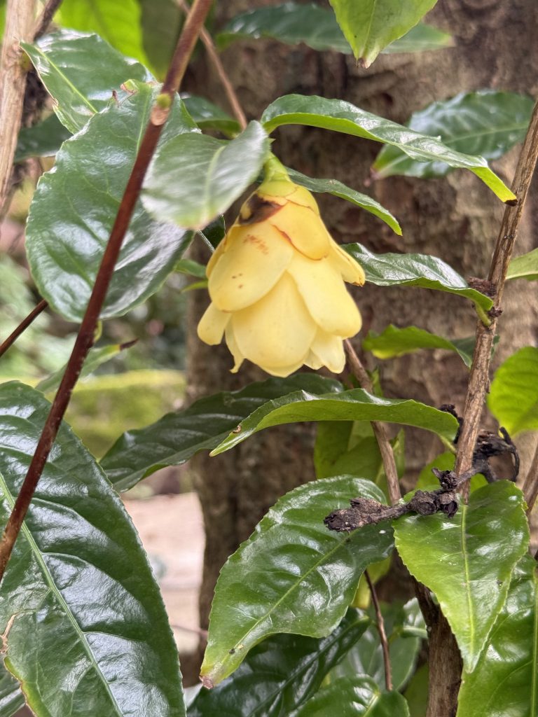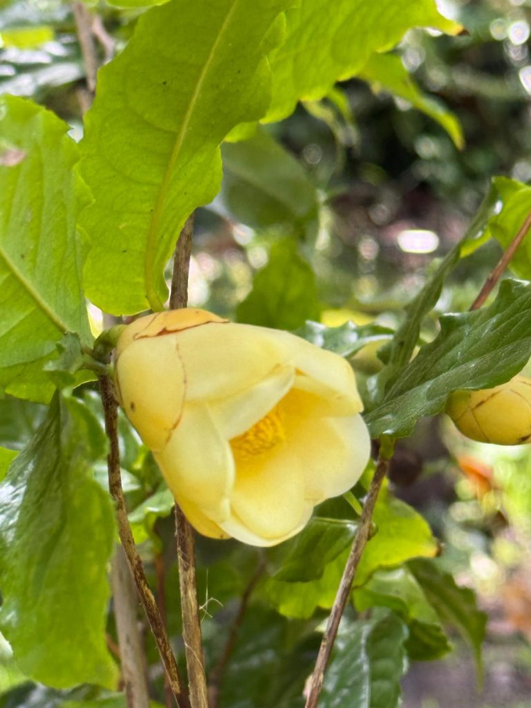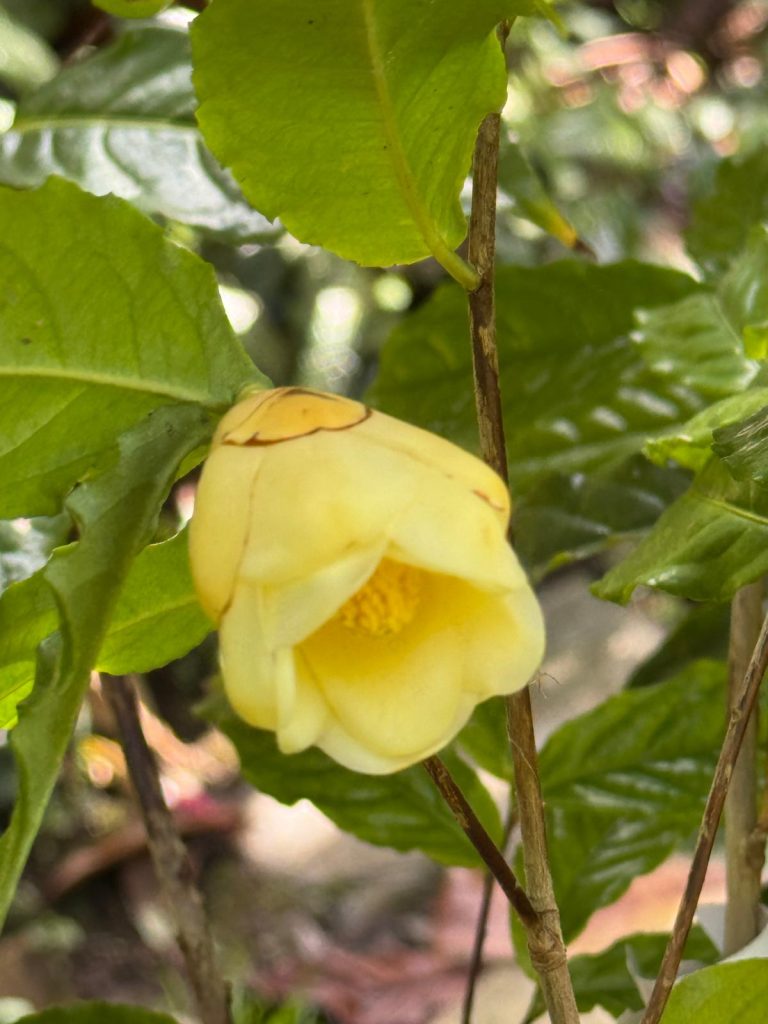 Gao Jiyin, Clifford R. Parks, Du Yueqiang, 2005, Specie raccolte del genere Camellia: un profilo illustrato, p.94. I fiori sono di colore giallo, con un diametro di 4,5-5,0 cm, portati all’estremità dei germogli. Pedicelli lunghi 5-7 mm. Brattee 5-6, glabre. Sepali 8-9, pubescenti. Petali 13-15, lunghi 1,8-2,5 cm, larghi 1,5 cm, di forma obovata, apice arrotondato. Androceo pubescente, lungo 0,8-2,4 cm, stami liberi alla base. Gineceo lungo 1,3 cm, 5 stili, liberi, non fusi alla base, ovario tomentoso. Stagione di fioritura: dall’autunno alla primavera. Capsule globose, di 3,8 cm di diametro, 5 loculi, da 6 a 8 semi per loculo. Foglie ellittiche o oblunghe, apice acuminato, cartacee o sottilmente coriacee, base arrotondata, lunghe da 6,0 a 12,0 cm, larghe da 2,1 a 5,0 cm, margine sottilmente seghettato. Piccioli lunghi 2,5 mm, pubescenti. Arbusto o alberello alto fino a 6 m, rami più vecchi lisci, di colore marrone scuro. (Dati compilati da Rosmann, 1997; Ninh, 1998; Motta, 2002) Distribuzione: Foresta tropicale a bassa quota nella provincia di Ninh Binh, a 100 km a sud di Hanoi, Vietnam; Località specifica: Parco nazionale di Cue Phuong, provincia di Ninh Binh, Vietnam.