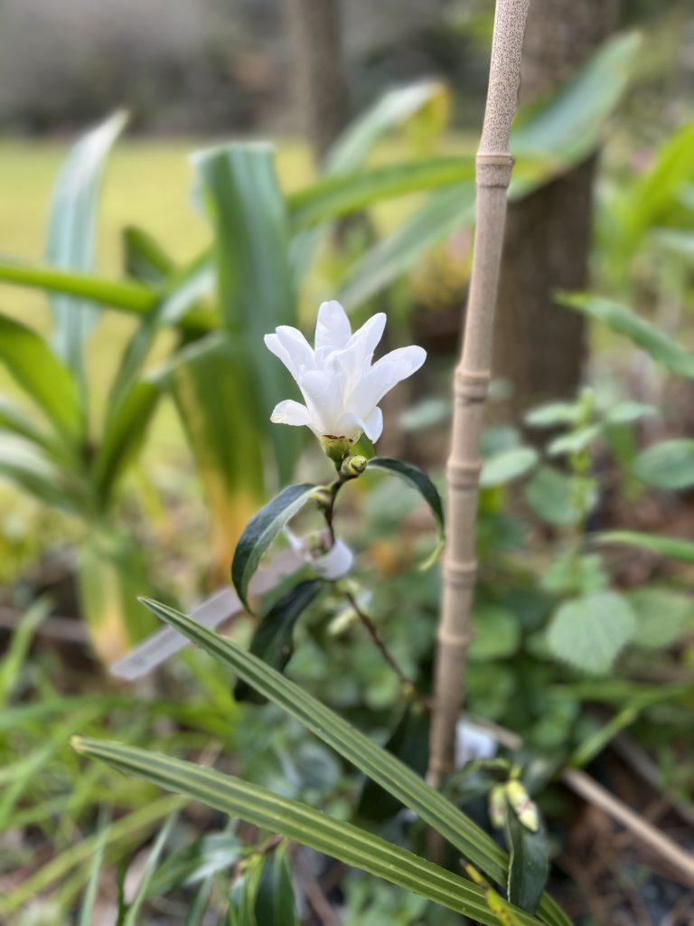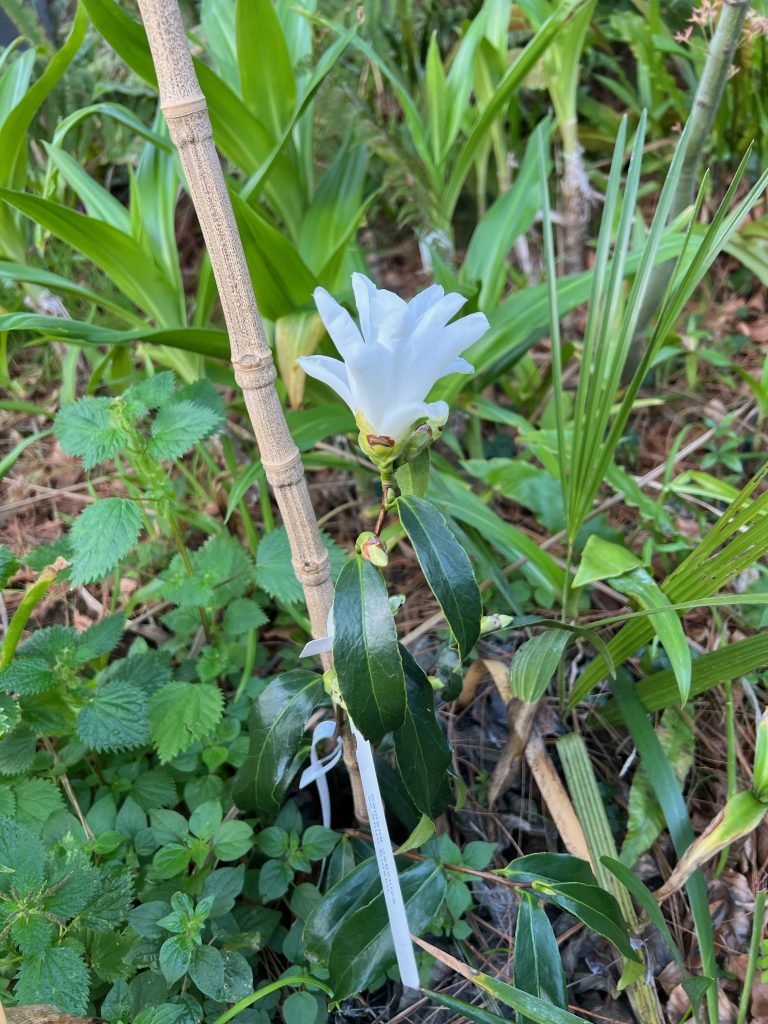 da Kodaira, Tokyo. Camelia giapponese n.81, agosto 2006: bianca, grande, a forma di loto, semidoppi, petali lunghi e stretti, stami irregolari, che fiorisce da febbraio a maggio. Albero che si allarga e piange. Foglie lanceolate, medie. Discendente di un incrocio tra Kujaku e Miyakodori. Originato da Shinichi Noguchi e nominato nel 2004.
