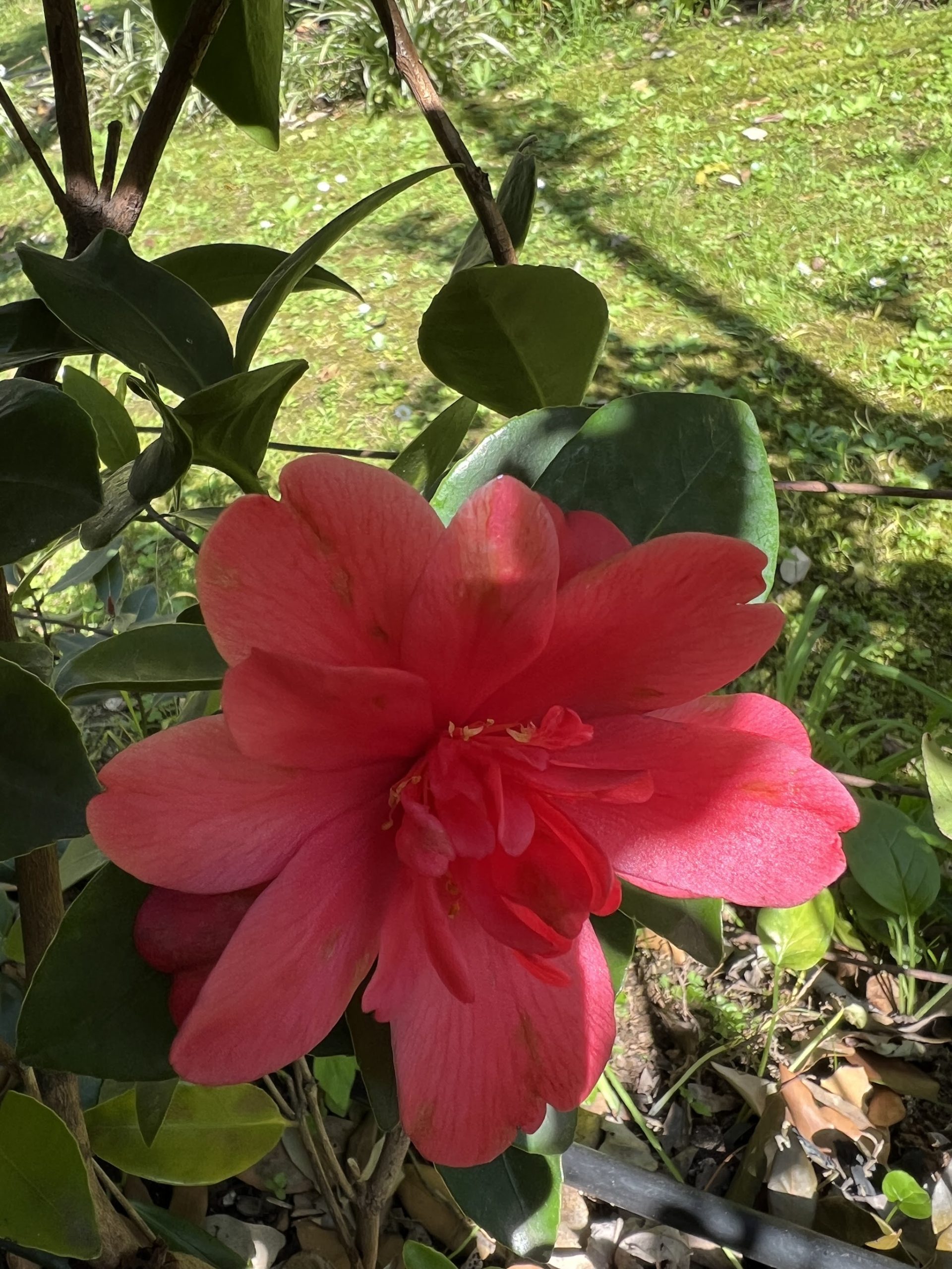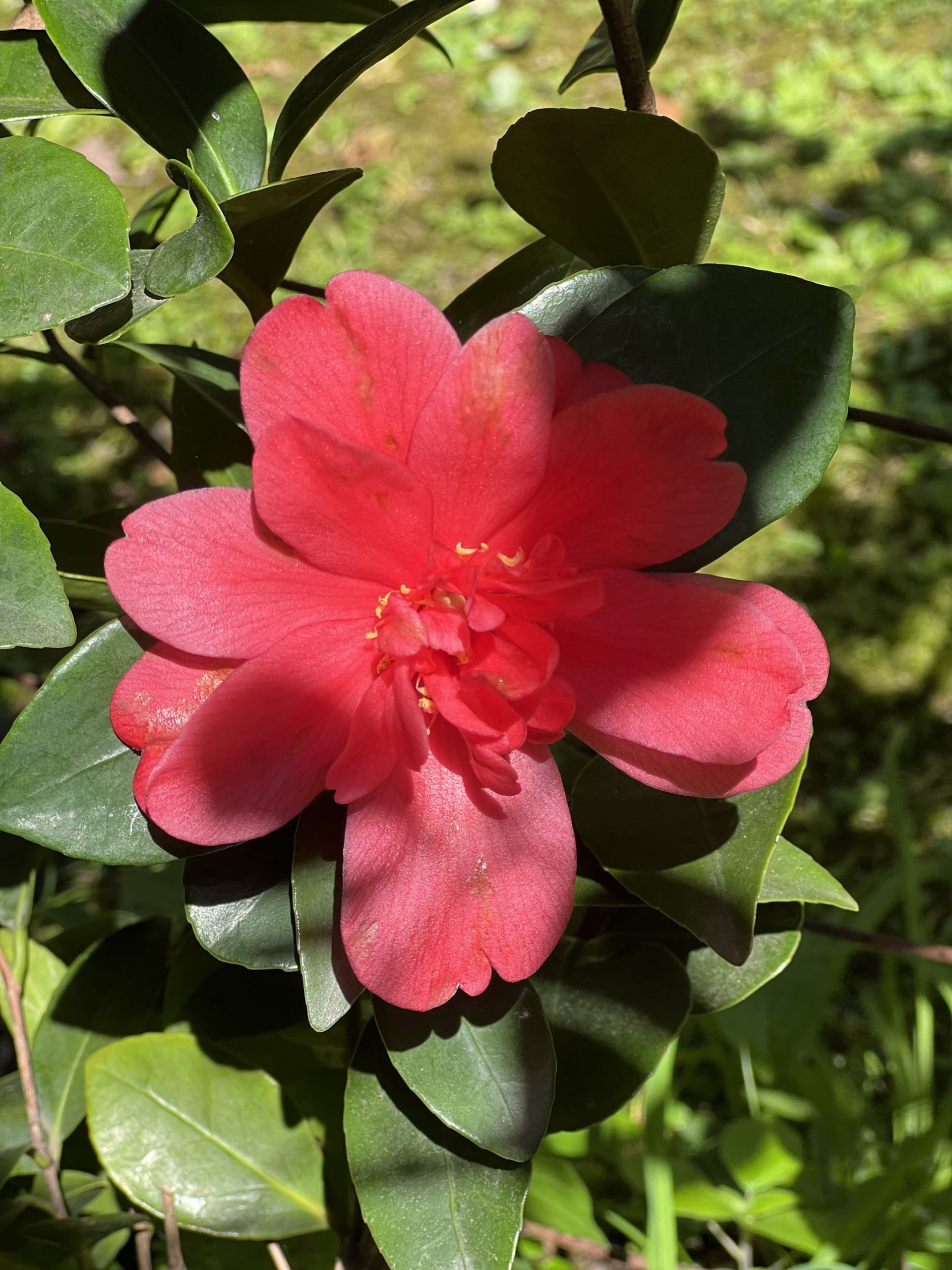 Xiari Qixin (ibrido di C. azalea)). Regno #2012-103. ICS, Journal 2011, p.58 con foto a colori. China Flowers & Horticulture, 2012, N.24, p.45. Gao Jiyin et al. 2016. Illustrations of the New Camellias Hybrids that Bloom Year-round. P.266. Un incrocio tra C. azalea e Dr. Clifford Parks. Fiori densi, di un rosso profondo, forma simile a quella della peonia. Diametro 8-9 cm, con 19 grandi petali esterni, ampiamente obovati, punte intagliate, superficie leggermente rugosa. 124 petalioidi, eretti e attorcigliati, con 7 spirali visibili. Alcuni stami con filamenti rossi chiari. Pianta molto compatta con rami densi. Fiorisce dall’estate all’inizio dell’inverno. China Flowers and Horticulture, N.24, 15 dicembre 2012 con foto a colori, Regn E-103; Proveniente da Palm Landscape Architexture Co. Ltd., Cina. Primo fiore sbocciato nel 2010. Foglie di colore verde scuro, lungo-ellittiche, lucide, margini finemente seghettati.