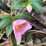 Peter Fischer, 1990, Camellie [p.13], tavola a colori [p.14]: Rosa salmone, piccolo fiore singolo, profumato di miele. Questo nuovo ibrido di C. japonica ‘Tinsie’ (Bokuhan), incrocio con C. lutchuensis, dalla forma elegante, rappresenta una novità di valore. È stato creato in Germania da Peter Fischer, a Höden, Wingst.