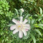 Nuccio’s Nurseries, 1993-1994, Lista Prezzi al Dettaglio, p.19: (Sinonimo ‘Caudata false’); Piccolo fiore semi-doppio con petali stretti; bianco sfumato di rosa tenue. Foglie strette con crescita media, cespugliosa, eretta, leggermente espansa. Rinominato da ‘Caudata false’. Sinonimo cinese ‘Shuangxing’.