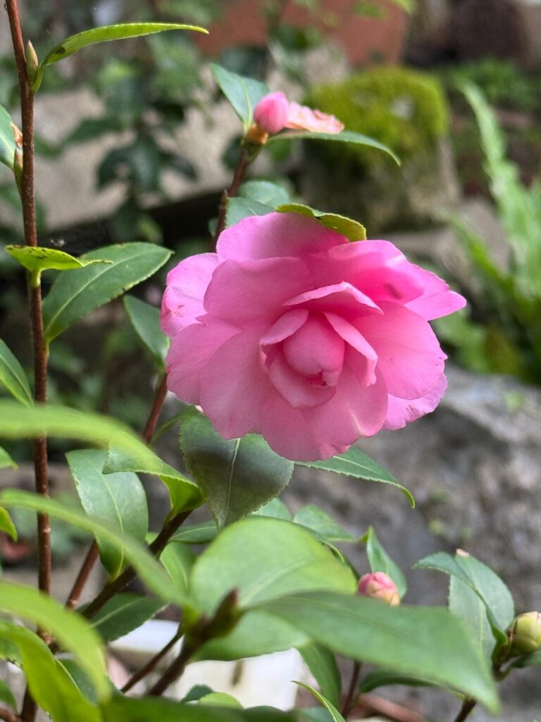 Camelia dedicata alla Nonna materna di Daniele Bosi , nostro Direttore Italia della International Camellia Society. Fiorita da un seme raccolto in Giappone, non tutti i fiori sono doppi, a volte fioriscono semidoppi.
