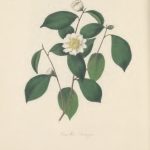Maggiori informazioni: Deslongchamps, L. 1824. Herbier Général de L’Amateurs, Vol.7, pl.444. originariamente in francese, tradotto in inglese da Armando de Castro Oliveira: “Fu solo dal 1811 che questa affascinante camelia fu trasportata in Inghilterra; e poco dopo è venuto a giovare ai nostri giardini. È originario del Giappone e viene coltivato anche in Cina. Ci sono diverse varietà con fiori bianchi più o meno del doppio; quella che abbiamo incluso ci è stata comunicata dal signor Boursault, e abbiamo visto a casa del signor Cels una varietà molto graziosa con fiori rosa molto doppi. Tutte queste varietà vengono piantate in vasi o scatole in terreno di erica e vengono portate nella serra temperata durante l’inverno. Sono multistrato o talea ad aria; Questi ultimi, per riuscirci, devono essere realizzati in macchie messe sdraiati o nella concia della serra calda, e coperti con campane di vetro. Abbiamo visto la varietà a fiore bianco a settembre e ottobre e la varietà a fiore rosa a Marte e aprile. Le foglie di questo arbusto, secondo Thunberg, conservano una fragranza molto gradevole. Le donne giapponesi usano il loro infuso per lavarsi i capelli. A volte li mescolavano con il tè per dargli un profumo gradevole. Lord Macartney ci dice che dai semi si ricava un olio buono come quello delle olive, e da cui la Cina ricava un grande commercio commerciale. La Camellia sasanqua forma nel suo paese natale un grande arbusto o un albero medio; Nelle nostre serre il suo fusto sale a dieci o dodici piedi, dividendosi in numerosi rami, allungati, grandine, molto sparsi o anche abbastanza sporgenti. Questi rami sono cilindrici, glabri, rosati, forniti di foglie sparse, brevemente picciolate, ovali, un po’ coriacee, persistenti, glabre, lucide, rivestite di denti poco profondi. I suoi fiori sono generalmente bianchi, larghi da quindici a diciotto linee, leggermente profumati, solitari o raggruppati da cinque a sei insieme alla sommità dei rami, a volte ascellari sotto le ascelle delle foglie superiori. Il loro calice è composto da cinque o sei foglioline squamose, arrotondate, concave, decidue. La corolla, a fiori singoli, è formata da cinque a sei petali ovali-oblunghi, dentellati alla sommità, liberi e non aderenti alla base e metà più grandi del calice; Nei fiori doppi ci sono diverse file di petali. Gli stami sono molto numerosi, recanti alla sommità piccole antere arrotondate, compresse, a due scomparti. L’ovario è superiore, un po’ peloso, sormontato da cinque stili un po’ diseguali, terminanti con un unico stigma. Non abbiamo visto il frutto”.