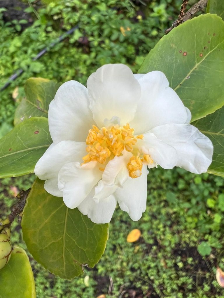 Aiton, 1812, Hortus Kewensis, 4:235. Importato dalla Cina da William Kerr nel 1811 per i Giardini Reali di Kew e portato fuori dal capitano Wellbanks sull’East Indiaman “Cuffnells”. Per molti anni è stato erroneamente identificato come un C. sasanqua. Vedi Sealy, 1958, Monografia, pp.208-209. È stato illustrato nel Registro Botanico di Edward, 1815, vol.1, tav. 12 e anche da Chandler & Booth, 1831. pl.5. Sinonimi: ‘Lady Bank’s White Sasanqua’, ‘Lady Bank’s Camellia’, ‘Chandler’s Sasanqua’, ‘Sasanqua Alba’, ‘Sasanqua Alba Semi-plena’, ‘Sasanqua’ (Lady Banks) ‘Flore Alba Simplex’. Originario della Cina.