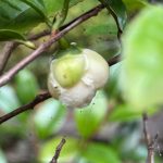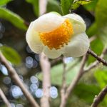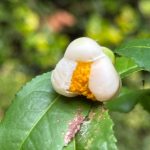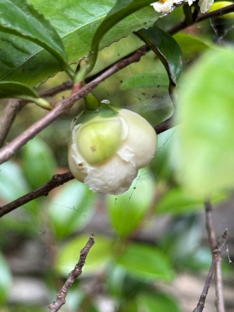 Gao Jiyin, Clifford R. Parks, Du Yueqiang, 2005, Specie Raccolte del Genere Camellia, un Quadro Illustrato,p.225. I fiori sono bianchi, di 2,5-3,5 cm di diametro, portati alle estremità dei rami e nelle ascelle delle foglie; la produzione di gemme può essere abbondante. Pedicelli di 5-10 mm di lunghezza, piegati verso il basso, glabri. Brattee 2, precocemente decidue. Sepali 5, persistenti, superficie interna puberulenta. Petali 5-8, di 1,0-2,0 cm di lunghezza, ampiamente ovati e arrotondati all’estremità, leggermente uniti alla base con la colonna staminale. Androceo glabro, di 8-13 mm di lunghezza, i filamenti esterni fusi dalla base in una coppa di 1-2 mm di lunghezza. Gineceo glabro, lungo circa 1 cm, 3 stili divisi superficialmente all’estremità, ovario bianco-tomentoso. Periodo di fioritura: tardo autunno fino all’inizio dell’inverno. Capsule globose, di-globose o triglobose, di 2,0-3,0 cm di diametro, 2-3 loculi, parete del pericarpo spessa 1 mm. Foglie ellittiche o oblunghe, apice ottuso-acuminato o acuto, base cuneata, lunghe da 4,0 a 12,0 cm, larghe da 2,0 a 5,5 cm, margine finemente seghettato, sottilmente coriaceo, superficie superiore glabra, superficie inferiore leggermente pubescente, nervature centrali rialzate su entrambe le superfici della lamina. Piccioli di 3-8 mm di lunghezza, glabri. Arbusto o piccolo albero alto fino a 6 m, giovani germogli leggermente viola, leggermente pubescenti, gemme terminali bianco-pubescenti, rami più vecchi di colore grigio-marrone. Distribuzione: a sud del fiume Yangtse in Cina, nel sud del Giappone, in Corea del Sud e in altri paesi del sud-est asiatico. La posizione esatta della sua distribuzione naturale è sconosciuta. È ampiamente coltivato nelle regioni temperate calde di tutto il mondo. Località specifica: Meijiawu, città di Hangzhou, provincia di Zhejiang, Cina.