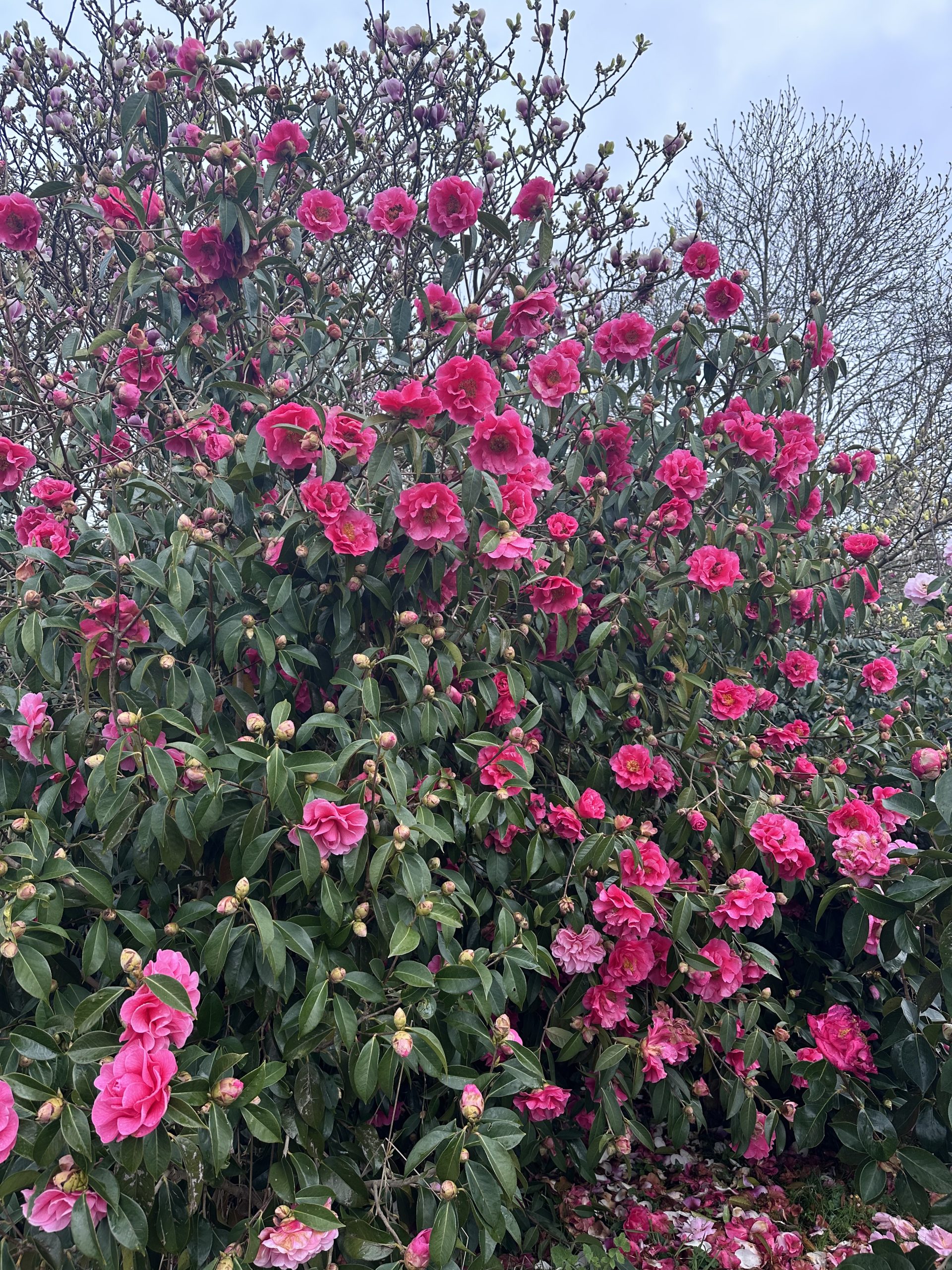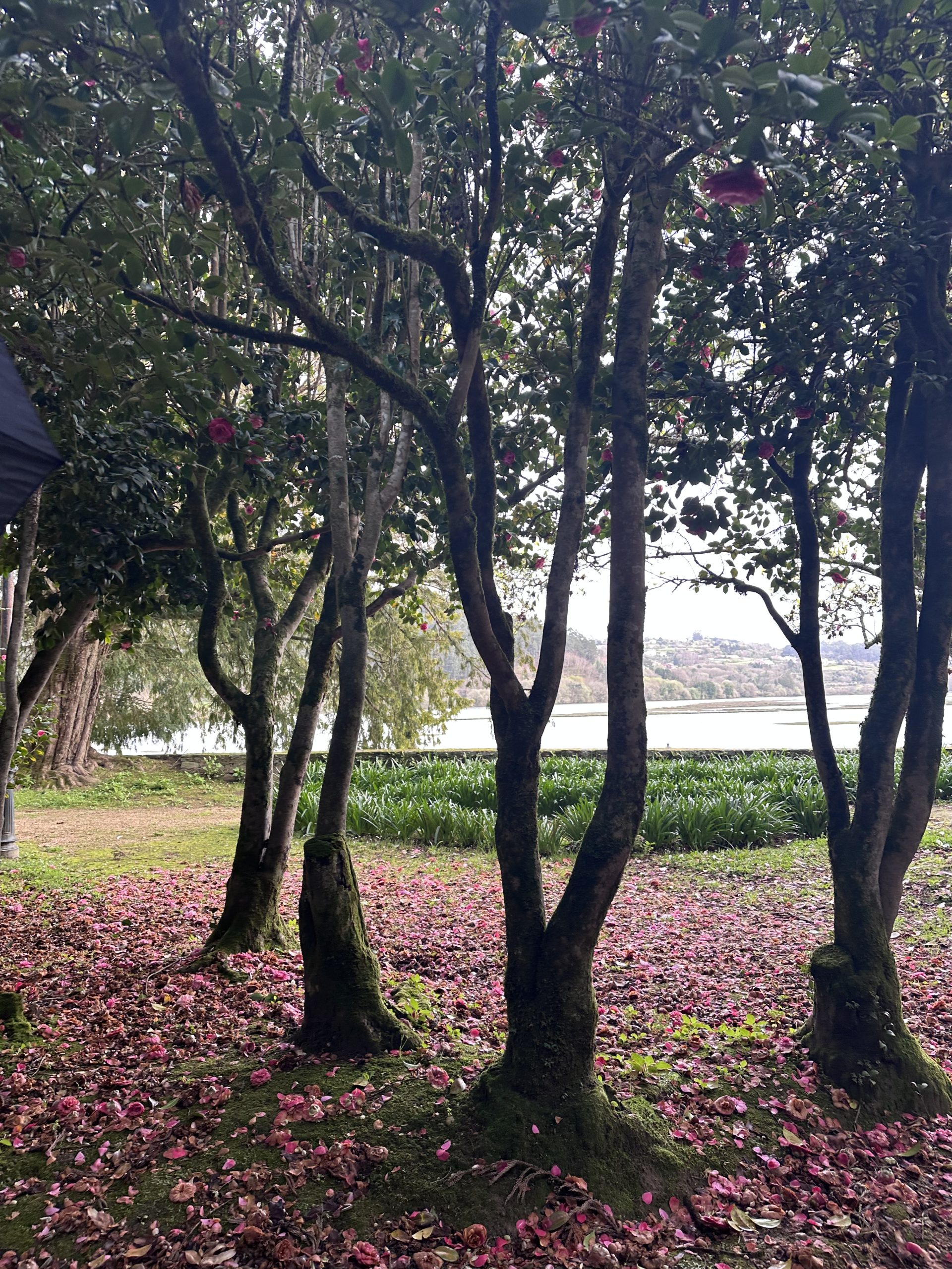 Al Pazo de Rubianes, la collezione di camelie si apre in tutta la sua ricchezza: esemplari imponenti, varietà storiche, un senso di continuità che attraversa il tempo.